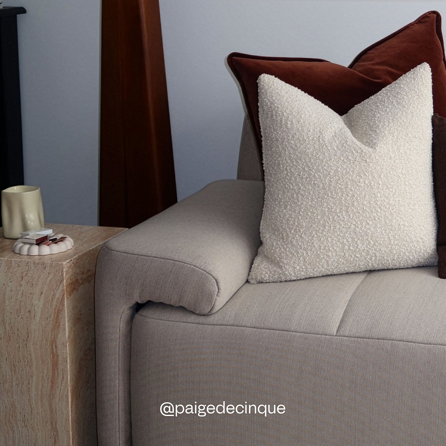 If you happen to spill any liquid on your sofa, simply wipe it up quickly with an absorbent cloth or paper towel, avoid using any harsh cleaners as they may cause fabric discolouration. The cushion covers can also be removed to wash with mild laundry detergent if necessary.